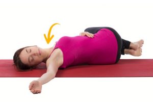 To ćwiczenie pozwoli Ci rozluźnić mięśnie i rozładować napięcie. Ułóż się wygodnie na plecach, nogi zegnij w kolanach. Teraz przełóż powoli zgięte kolana w prawą stronę, a tułów odwróć w drugą stronę. Jeżeli czujesz duży dyskomfort możesz pracować tylko na zgiętych kolanach, tułów pozostawiając beż ruchu.