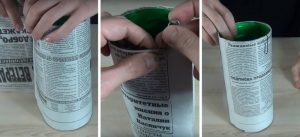 Na początek zabierzemy się za butelkę. Górę należy odciąć – odcinamy 1/3 długości butelki.
