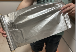- Wymieszaj dokładnie składniki. Następnie przygotuj folię aluminiową.
