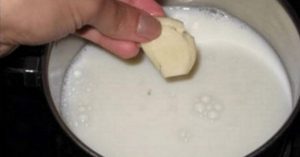 Wlej wodę i mleko do garnka, dodaj czosnek i gotuj na małym ogniu, aż mieszanina zredukuje się do połowy. Odstaw i posłodź według uznania. Pij gotowy napój.