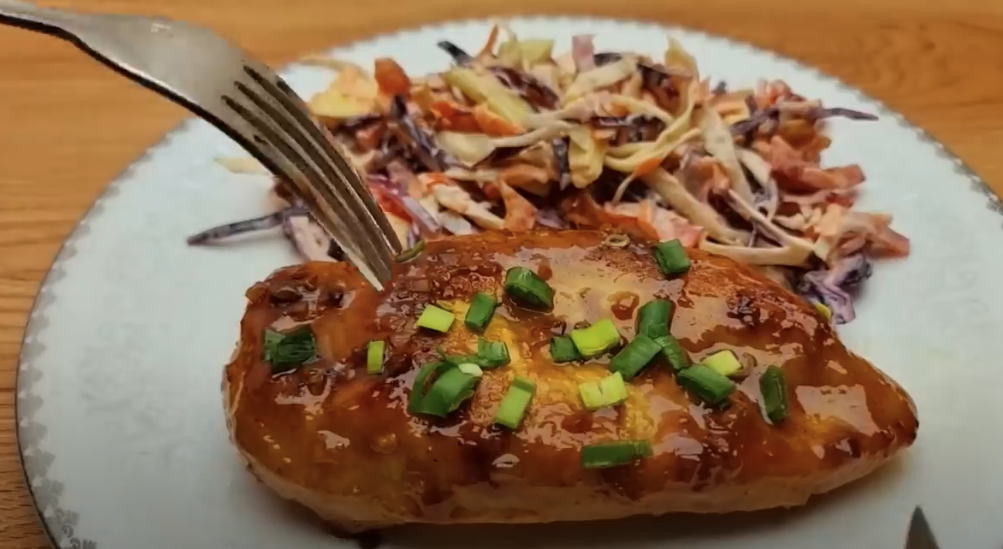 Dzisiaj przygotujemy pyszne smażone piersi z kurczaka w aromatycznym sosie z miodem i czosnkiem, a do tego orzeźwiającą sałatkę z kapusty, papryki, ogórka i jabłka. To danie jest pełne smaków i doskonałe na obiad! Zaczynajmy!