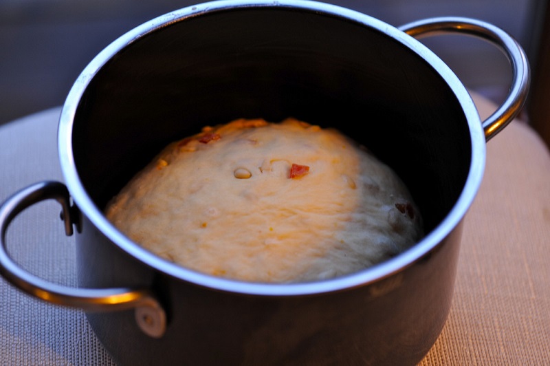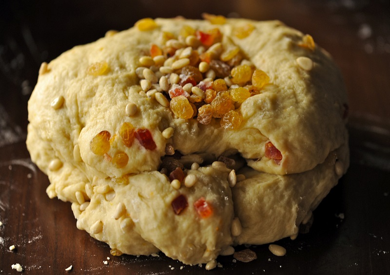 Po tym czasie przełóż ciasto do specjalnej, wysokiej tortownicy przeznaczonej do pieczenia panettone. Powinna ona być wyłożona papierem do pieczenia. Po wyrośnięciu delikatnie zagnieć ciasto. Przełóż je do foremki. Pozostaw w ciepłym miejscu do momentu, kiedy babka nie wypełni formy po brzegi.