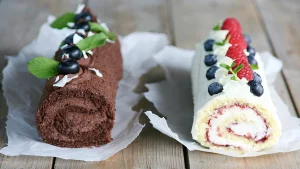 Możesz stwierdzić, czy biszkopt jest odpowiednio upieczony po różowej powierzchni. Upieczony biszkopt pozostaje elastyczny w dotyku palcem, ale nie kruszy się. Odwróć gorący biszkopt wilgotnym ręcznikiem papierowym i natychmiast zwiń.