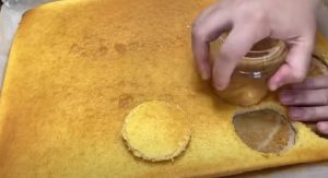 Po ostygnięciu wycinamy foremką do ciastek lub szklanką jak najwięcej krążków. Nie wyrzucaj reszty tuszy, ale drobno ją zmiel. Następnie posmaruj koła 100 mililitrami soku pomarańczowego.