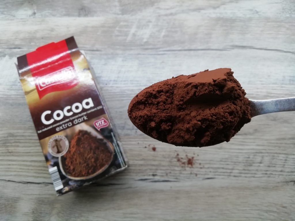 Obrane banany umieszczamy w słoiku blendera, dodajemy kakao i miksujemy na jednolitą masę.