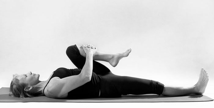 Podczas wykonywania tego ćwiczenia należy położyć się na plecach i przyciągnąć kolano do klatki piersiowej. Następnie musimy pamiętać o tym, aby druga noga pozostała w pozycji wyprostowanej, a ramiona z kolei powinny pozostać przy podłodze.