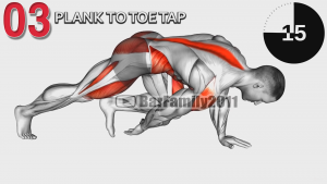 Z napiętymi mięśniami i równomiernym oddechem, próbuj dotknąć przeciwległego końca nogi, zmieniając strony. Trwa to 45 sekund.
