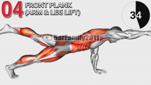 Podnoś przeciwną rękę i nogę, zachowując równowagę, z napiętymi mięśniami i równym oddechem przez 45 sekund.