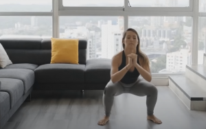 Ćwiczenie: Wykonaj głęboki przysiad z szeroko rozstawionymi nogami, przejdź przez jedno kolano do drugiego.