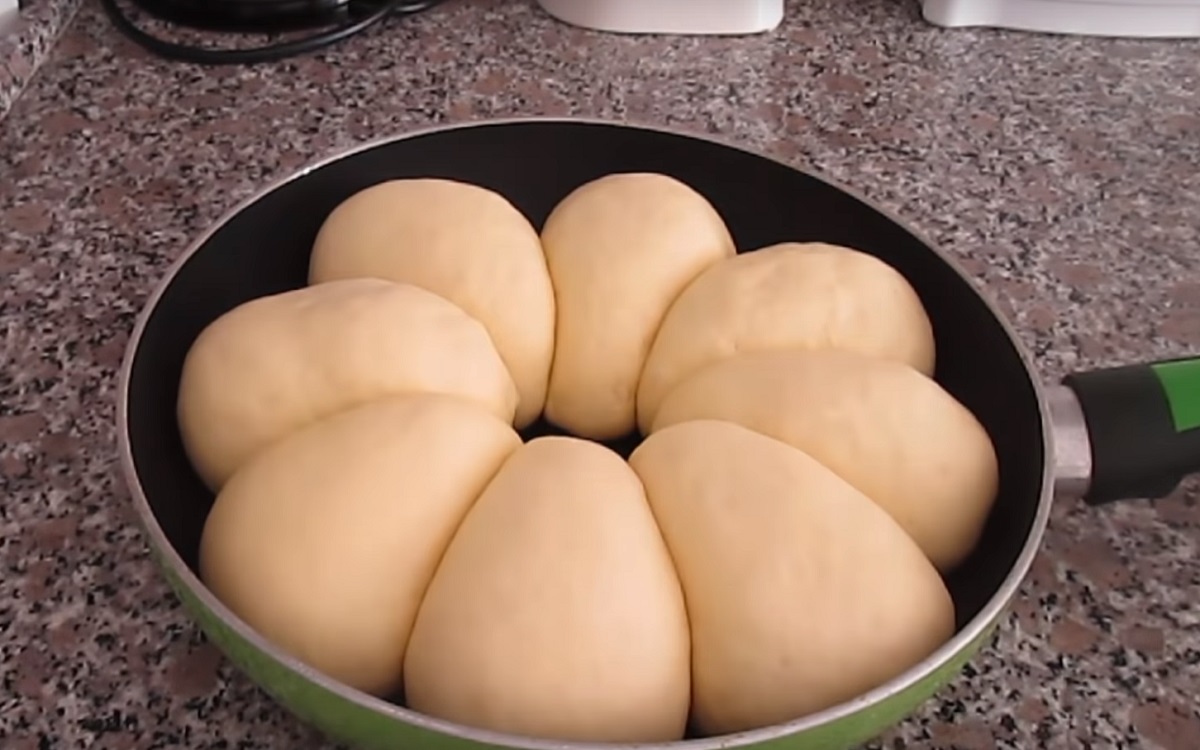Potem podziel je na 8 części i już możesz kształtować osiem okrągłych bułek. Ułóż je na patelni wysmarowanej olejem i ponownie odstaw, aby ciasto podrosło. Tym razem może to zając nawet kilkadziesiąt minut. Teraz masz czas na kawę.
