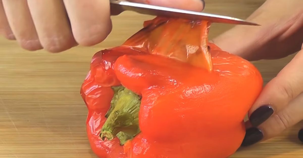 Paprykę umyć pod bieżącą wodą i osuszyć ręcznikami. Połóż je kolejno w niewielkiej odległości od siebie na blasze wyłożonej pergaminem. Przed gotowaniem na każdej papryce zrób kilka nakłuć widelcem ze wszystkich stron. Piecz paprykę w całości w piekarniku nagrzanym do 180 stopni przez 30-40 minut do miękkości.