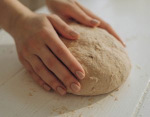 Od razu dzielimy ciasto na mniejsze bochenki. Ułożyć na blaszce wyłożonej papierem do pieczenia.