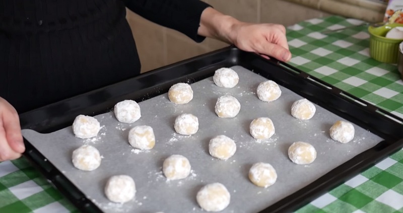 Kuleczek nie spłaszczaj! Same rozpłyną się podczas pieczenia. Możesz je obsypać cukrem pudrem lub ksylitolem, żeby było zdrowiej. Rozłóż na blaszce pokrytej papierem do pieczenia. Rozgrzej piekarnik do 200 stopni C i włóż do niego blaszkę z ciasteczkami. Piecz 15 minut.