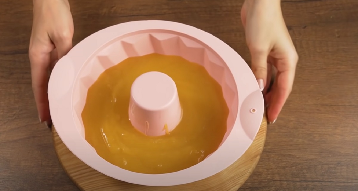 Masa musi być idealnie gładka, nie mogą być w niej grudki, konsystencja będzie bardzo gęsta. Przygotowaną masę przelewamy do foremki w kształcie babki.