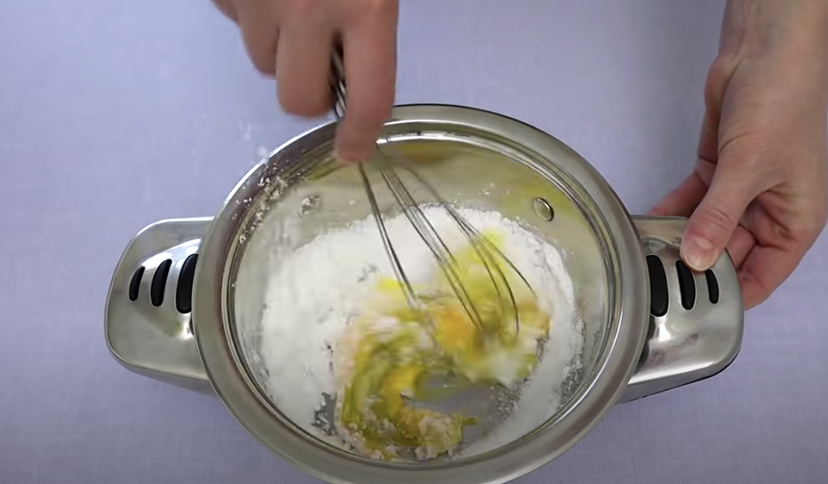 Najpierw przygotuj krem. Jajko wymieszaj z cukrem, skrobią, mlekiem i ugotuj gęsty budyń.