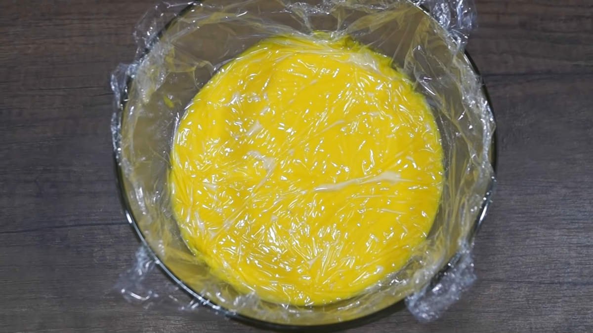 Aby przygotować krem, wymieszaj żółtka, 10 łyżek cukru, pozostałą mąkę, cukier waniliowy i mleko. Włóż składniki do garnka, postaw na ogniu i zagotuj, cały czas mieszając. Tuż przed zagotowaniem wyjmij, ale mieszaj śmietankę przez kolejne 2 minuty, a następnie ostudź.