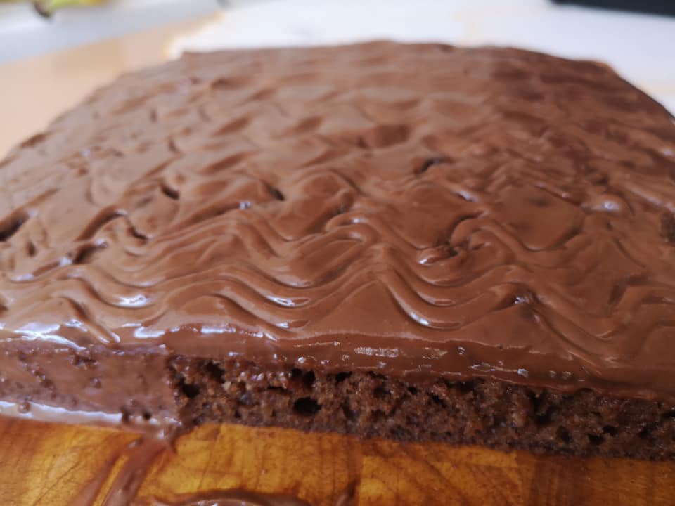 Nie trzeba dorzucać składników w określonej kolejności ani rozdzielać jajek. Ciasto pieczemy przez około 45 minut w 180 stopniach. Po wyciągnięciu i schłodzeniu ciasta dolewamy do niego wcześniej zaparzoną kawę i smarujemy konfiturą. Potem musimy już tylko przygotować masę czekoladową.