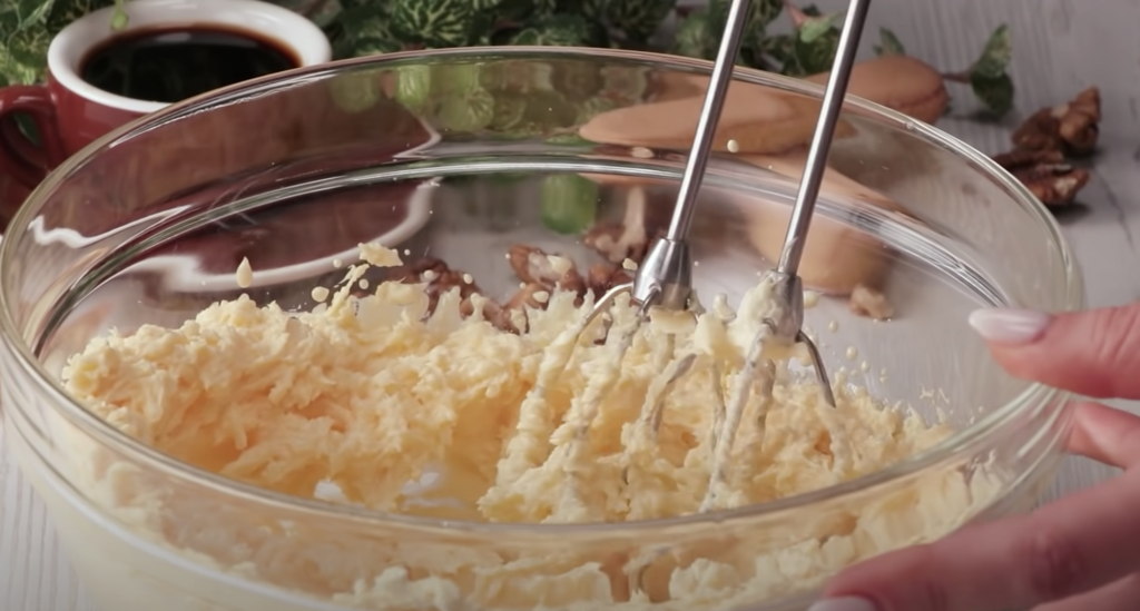 Następnie w garnku postawionym na średnim ogniu ubijaj żółta z cukrem przez około 8-10 minut. Po tym ostudź je i ubij ponownie. W tym samym momencie ubij również zmiękczone masło.