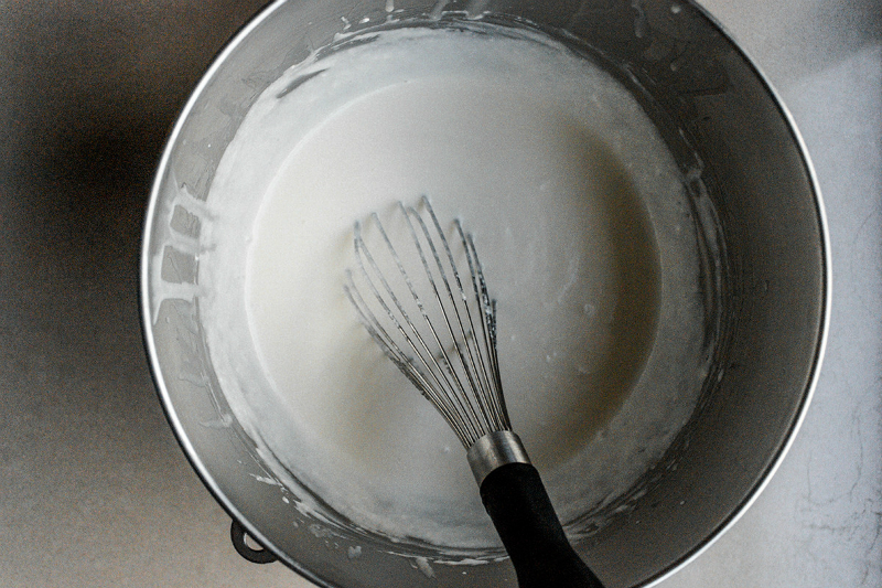 Wlej kefir i ubij ponownie składniki. Wlej płynną mieszaninę do suchych składników i mieszaj do uzyskania gładkiej masy.