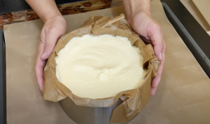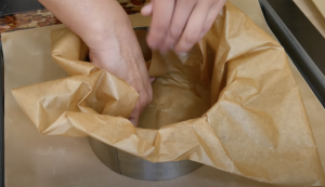 Po ostygnięciu ciasta, zdejmij papier do pieczenia.