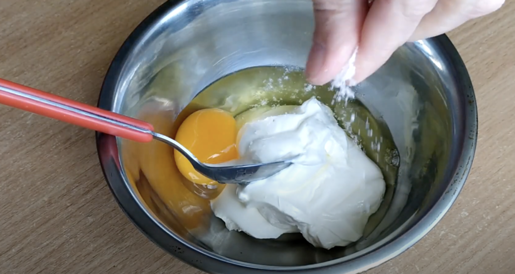W misce wymieszaj śmietanę i jajka, teraz dodaj ser i sól. Dodaj również paprykę i przeciśnięty przez praskę czosnek. Możesz improwizować z ulubionymi przyprawami. Ciasto mieszaj do uzyskania jednolitej i gładkiej konsystencji.