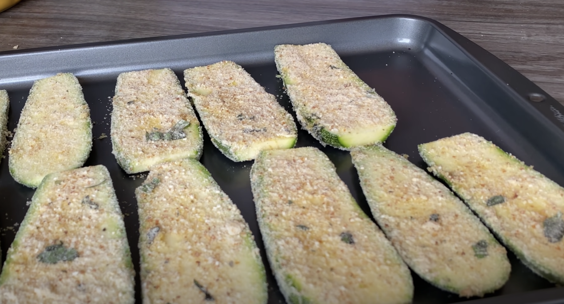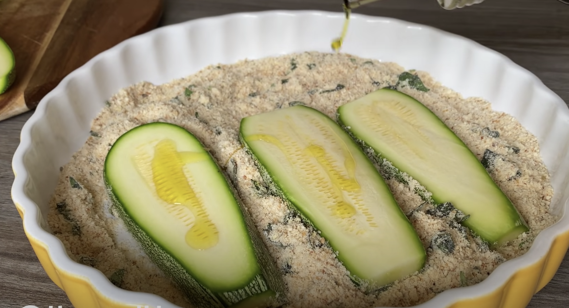 Następnie należy polać drugą stronę cukinii oliwą z oliwek i obtoczyć w masie.