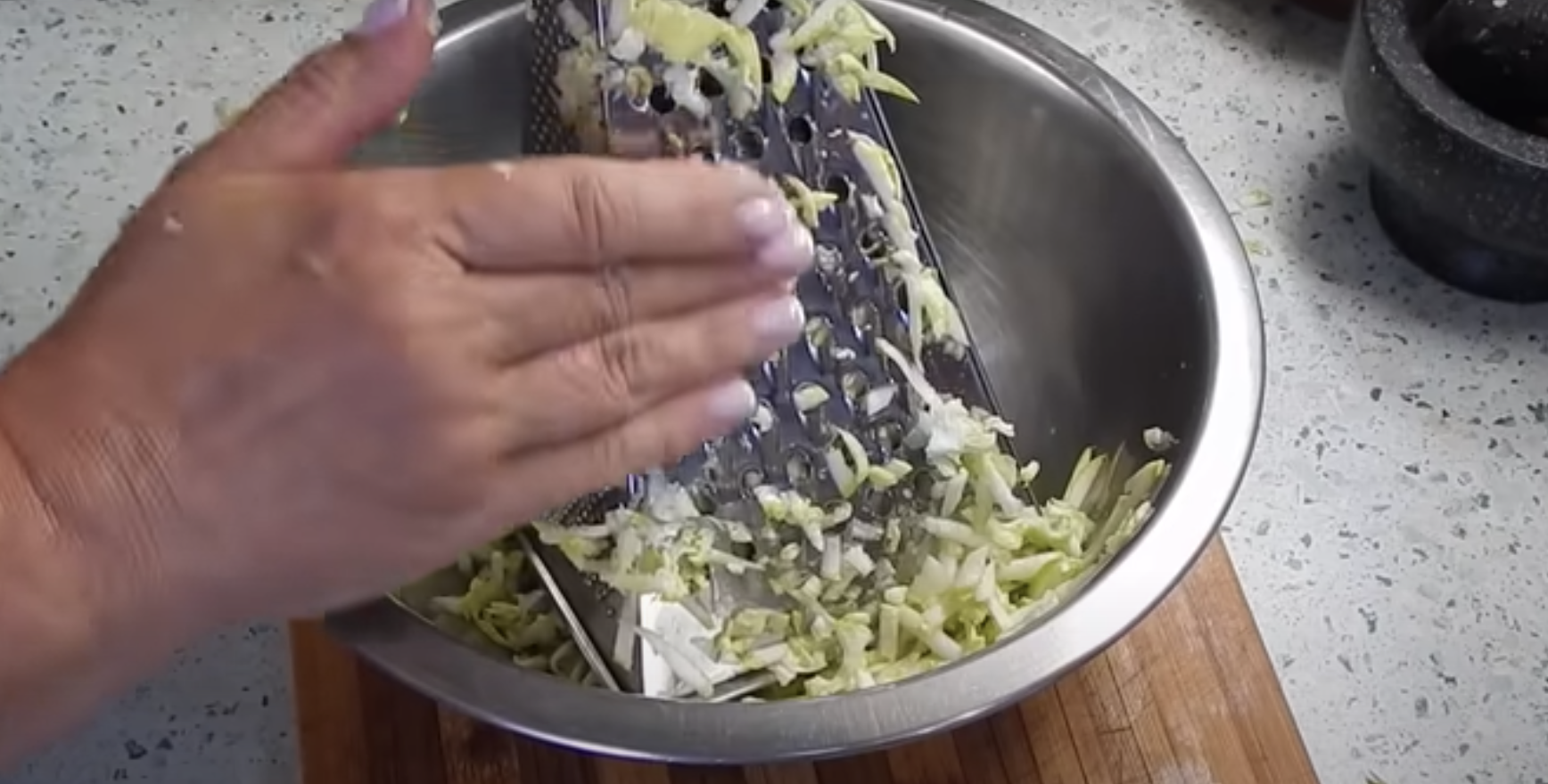 Najpierw obierz wszystkie przygotowane warzywa. Następnie zetrzyj cukinię na tarce, posól i odstaw, aby wypuściła sok.