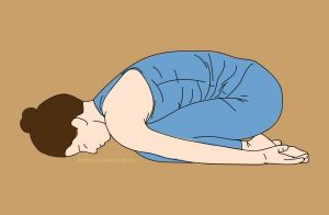 Ustaw stopy na szerokość ramion, a ręce niech dotykają podłoża. Delikatnie nachyl się do przodu. Pozostawiając w tej pozycji, oddychaj przez 3-4 minuty.