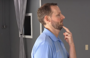 Wystarczy, że staniesz jak żołnierz, podpierając podbródek palcami. Teraz, delikatnie odchyli głowę do tyłu. Odczujesz ulgę! Wykonaj to ćwiczenie 10 do 15 razy – Twój kręgosłup Ci podziękuje!