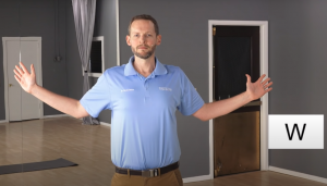 Na koniec, przejdź do pozycji „T”, podnieś ręce na wysokość barków. Wstrzymaj na dwa głębokie oddechy, a następnie zwolnij.