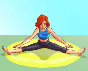 Instrukcje: Usiądź z plecami wyciągniętymi przed siebie i rozstaw nogi jak najdalej od siebie. Oddychaj głęboko: podczas wdechu podnoś ręce, a podczas wydechu pochylaj się do przodu tak bardzo jak tylko możesz z wyprostowanymi plecami. Czas: 1 minuta, 8-10 powtórzeń. Efekt: Pobudzenie krążenia w miednicy, zniwelowanie skurczów w pachwinie, wzmocnienie kręgosłupa, stabilizacja cyklu miesiączkowego i funkcjonowania jajników, likwidacja cellulitu.