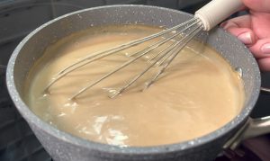 Rozpuść skrobię w 50 ml zimnej wody. Dodaj do mleka i mieszaj. Gotuj, aż zgęstnieje, cały czas mieszając.