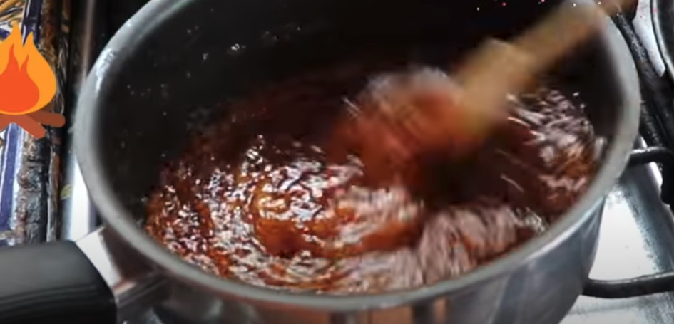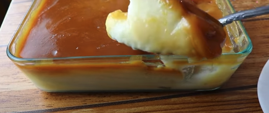 Na patelni, na średnim ogniu, podgrzej karmel, a następnie dodaj jabłka. Smaż przez kilka minut, aż jabłka zmiękną i pokryją się karmelem. Odstaw na bok. W dużym garnku wymieszaj 1 litr pełnego mleka z 10 łyżkami skrobi kukurydzianej. Dodaj 1/4 szklanki cukru i 3 łyżki mąki pszennej. Podgrzewaj na średnim ogniu, ciągle mieszając, aż mieszanina zgęstnieje.