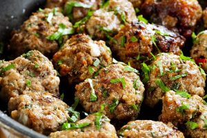 - Kolacja: pulpety z 180 g mielonej wołowiny z białkiem i kilkoma łyżkami bułki tartej, podawane z brokułami i połową jabłka.