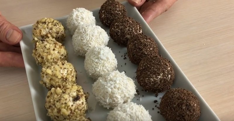 Formować małe kulki z masy i obtoczyć je w drobno posiekanych orzechach, wiórkach kokosowych lub startej czekoladzie. Kulki wstawić do lodówki na około 2 godziny, aby zastygły.