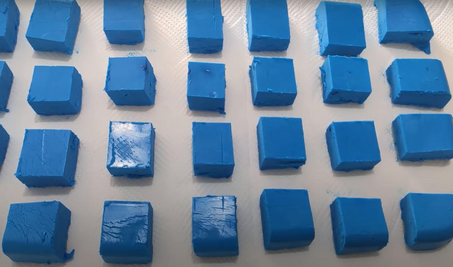 Potem dodaj łyżkę sody oczyszczonej i dokładnie wymieszaj zawartość. Przelej wszystko do miski. Zakryj ją i poczekaj aż masa stanie się zupełnie sztywna i ułóż na papierowy ręcznik, a następnie pokrój w kostkę i włóż ją do toalety.