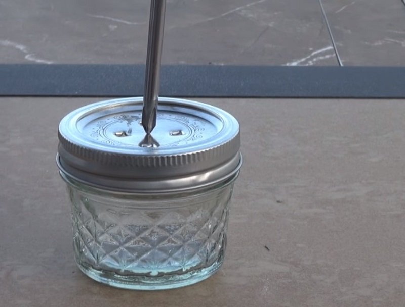 Następnie śrubokrętem zrób kilka małych otworów w pokrywie. Możesz też zrobić je przy pomocy gwoździa i młotka. W przypadku folii spożywczej będzie prościej – wystarczy ją przekłuć. Gotowe!
