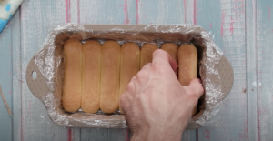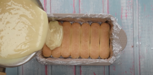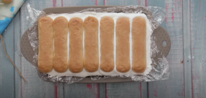 Na dnie wyłóż długie biszkopty, aby do siebie przylegały.