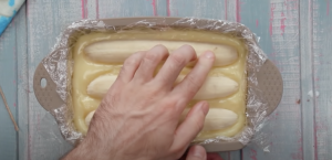 Gotowy krem przelej na warstwę biszkoptów. Na górze umieść banany.