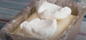 W międzyczasie zacznij ubijać śmietankę. Wyłóż ją jako ostatnią warstwę, upewniając się, że poprzednie są dobrze schłodzone.