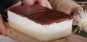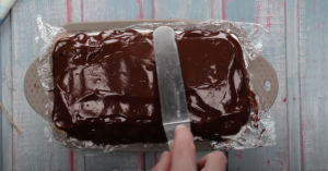 Umieść w lodówce na przynajmniej godzinę, a po tym czasie polej wierzch rozpuszczoną w mleku czekoladą.