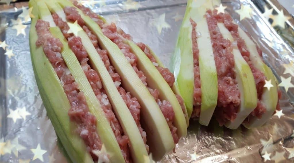 Faszerowana cukinia mięsem: Wystarczy 2 cukinie, 400 g mięsa mielonego, czosnek, ser… poznaj przepis