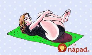 Leżąc na podłodze, unieś nogi, obejmij je obiema rękami. Pozycja przypomina noworodka w łonie matki, takie zwinięcie w kłębek. W ten sposób staraj się pozostać około pół minuty, później zwiększaj ilość czasu.