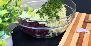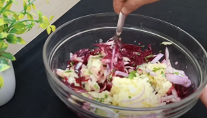 Tak przygotowaną sałatkę odstawiamy, aby odpoczęła.