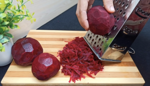Buraka oczyścić i zetrzeć na tarce o grubych oczkach.