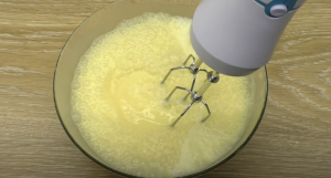 Następnie dodać mleko i miękkie masło, kontynuując ubijanie.