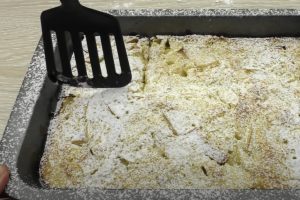 Wstawić do piekarnika nagrzanego do 180°C i piec przez 30-35 minut. Po upieczeniu posypać cukrem pudrem.