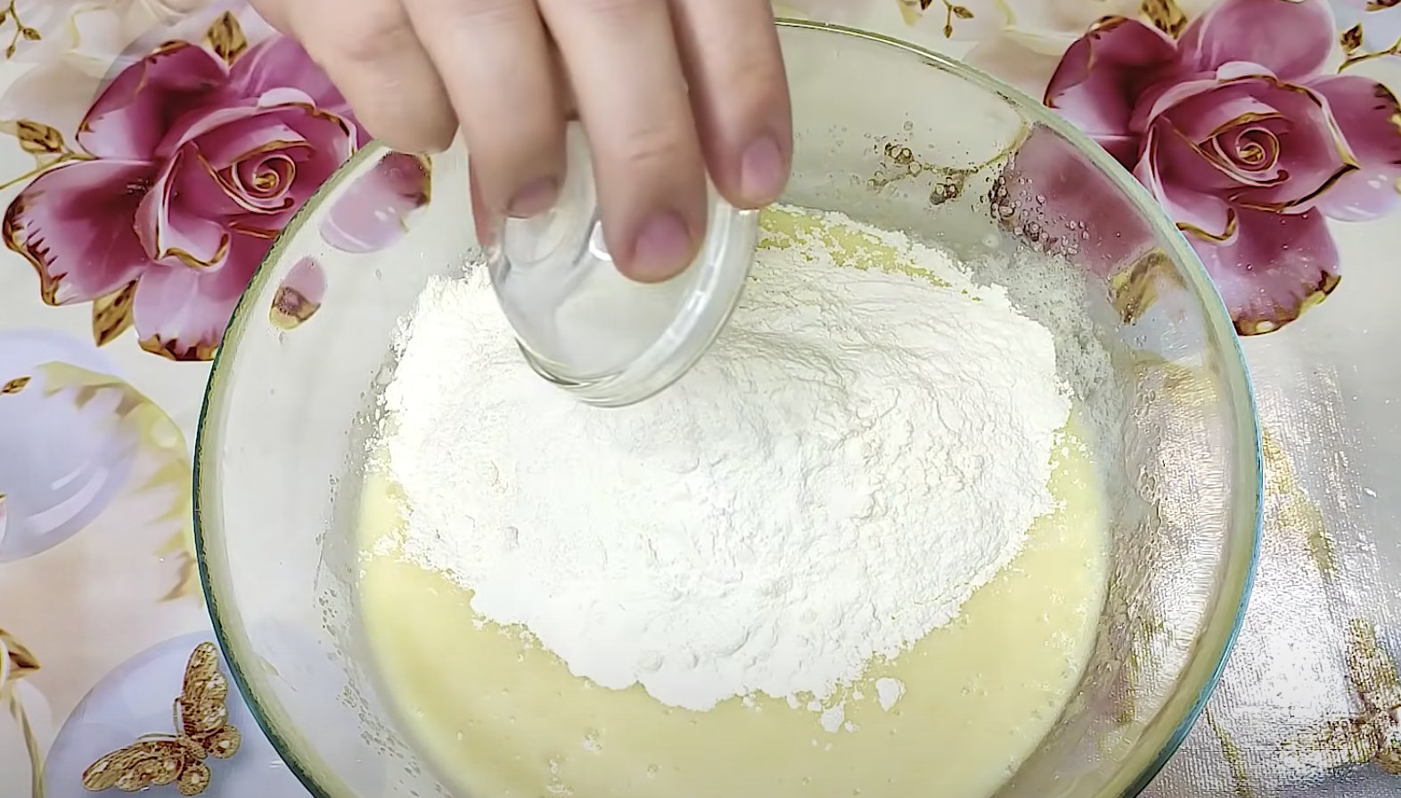 Jajka należy ubić z cukrem, a następnie dodać pozostałe produkty i całość dokładnie wymieszać.