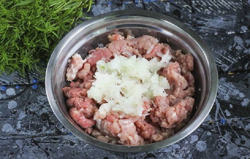- Zbierz do miski małą garść mięsa mielonego. Ręce należy najpierw zwilżyć wodą, wtedy bez problemu można uformować nawet owalne kotlety.