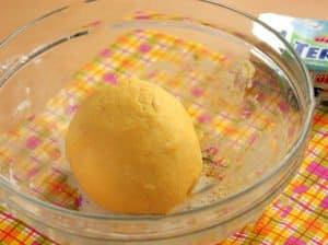 Do ciasta wsyp resztę mąki i zacznij je wyrabiać. Możesz dolać do niego odrobinę wody, jeżeli konsystencja nie będzie właściwa.